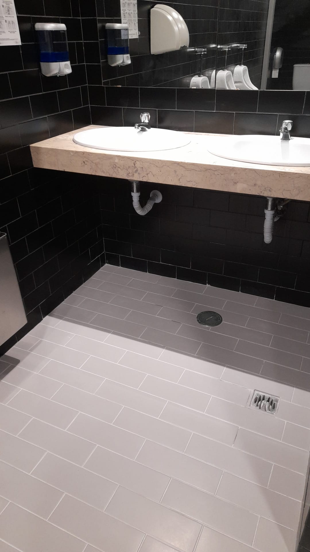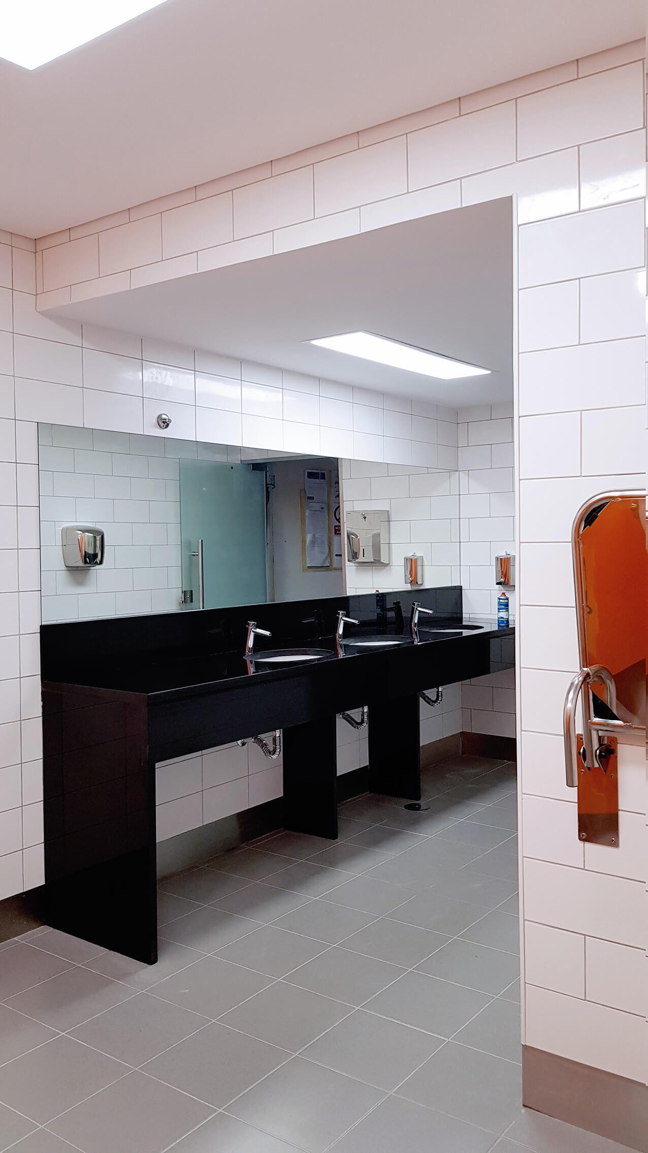 Os trabalhos incluíram a remoção de revestimentos e pavimentos antigos, substituição de louças sanitárias e equipamentos, renovação das redes hidráulicas e elétricas e aplicação de novos revestimentos, pavimentos anti deslizantes e iluminação eficiente. Foram também ajustados os layouts para otimizar circulação e acessibilidade, garantindo conformidade com as normas em vigor.